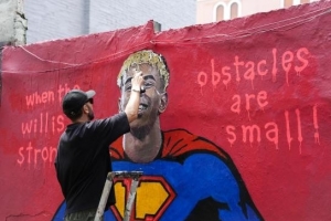 体育资讯7月12日讯 距离亚马尔年满18岁只剩几小时,意大利街头艺术家Tvboy将他描绘为巴塞罗那街头的超级英雄。在其最新作品中,Tvboy将亚马尔描绘成激励新一代的象征:他身着超人服装,并配以有力的标语:当意志坚强时,障碍就变得渺小。